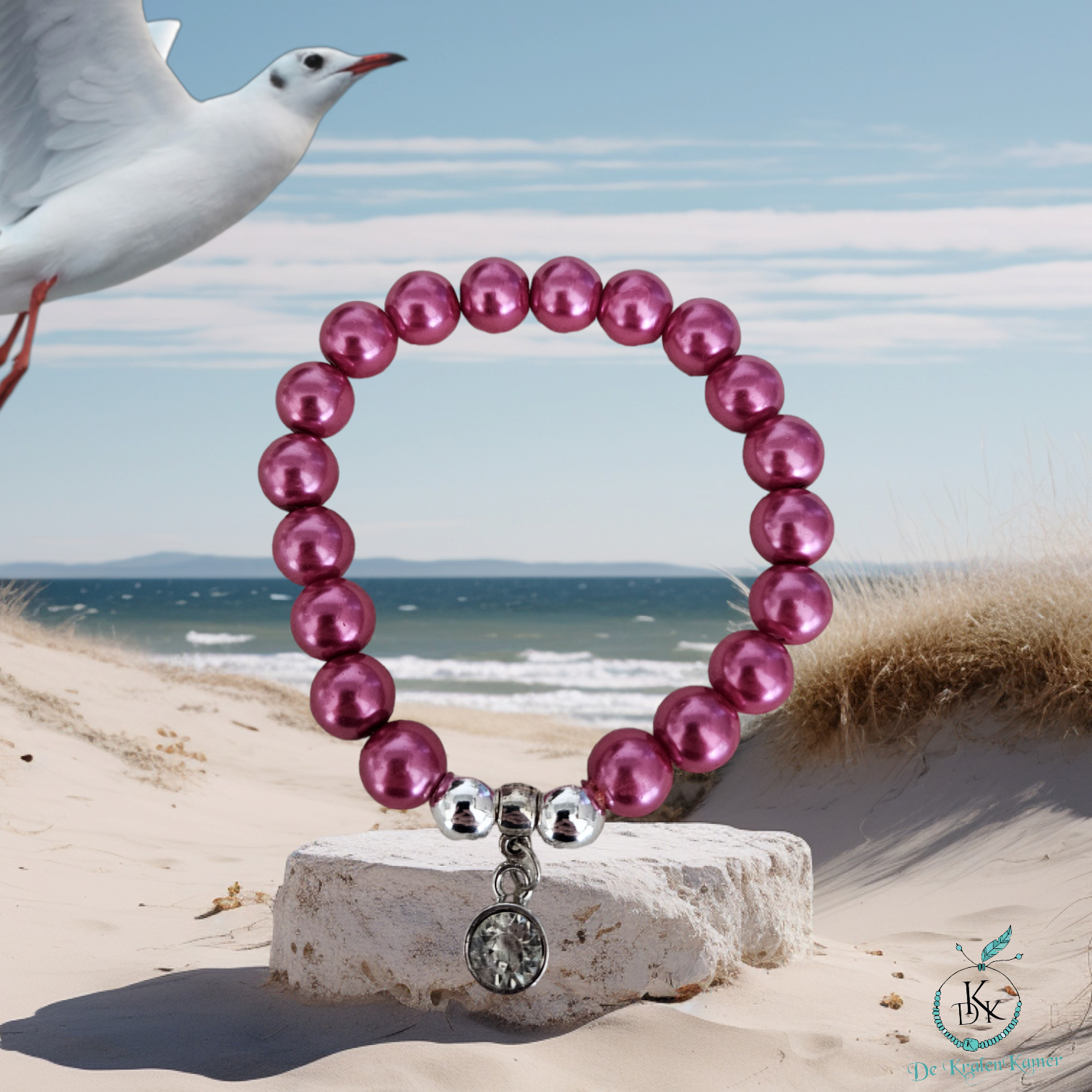 Glaskraal parel armband fuchsia