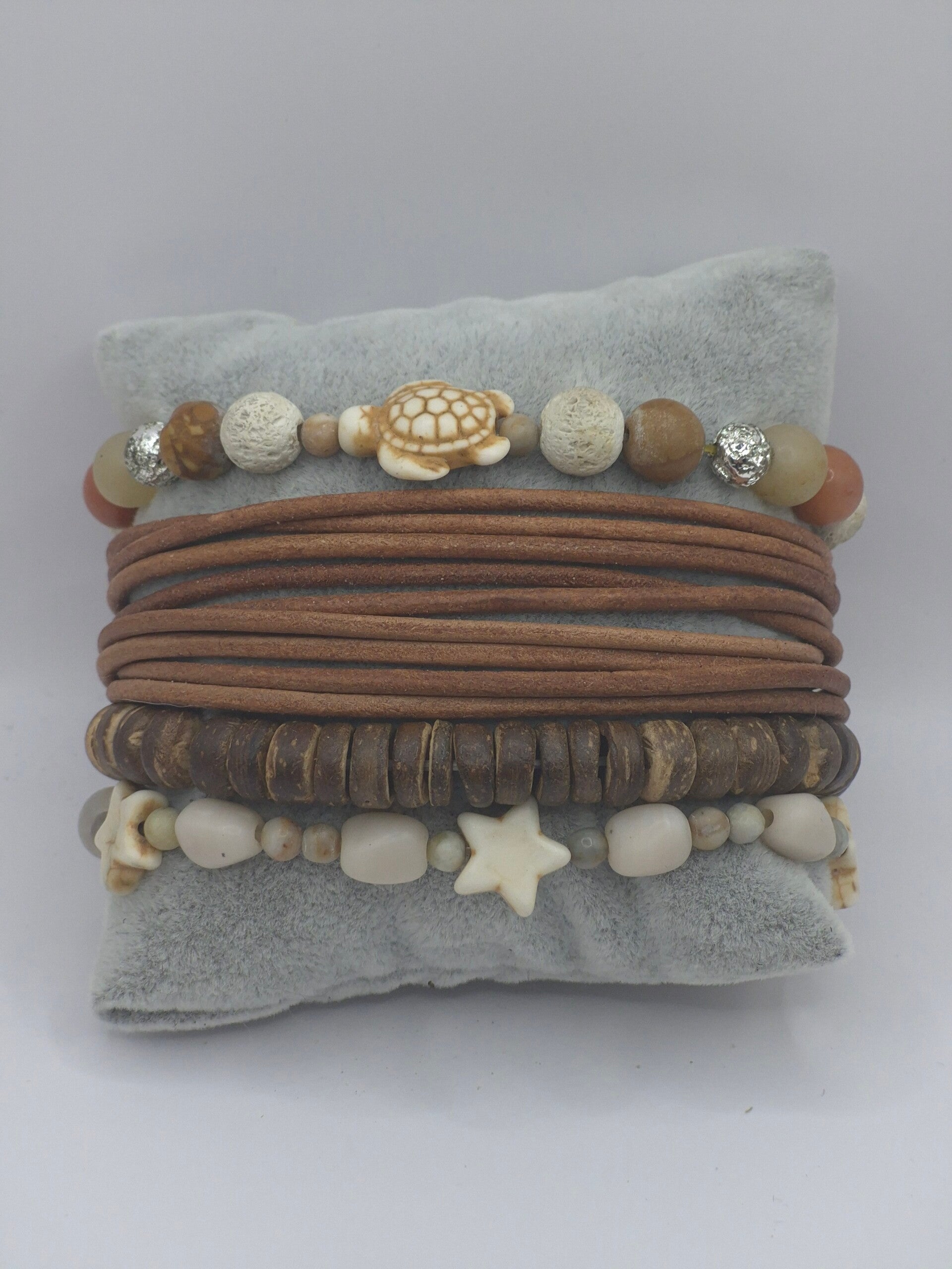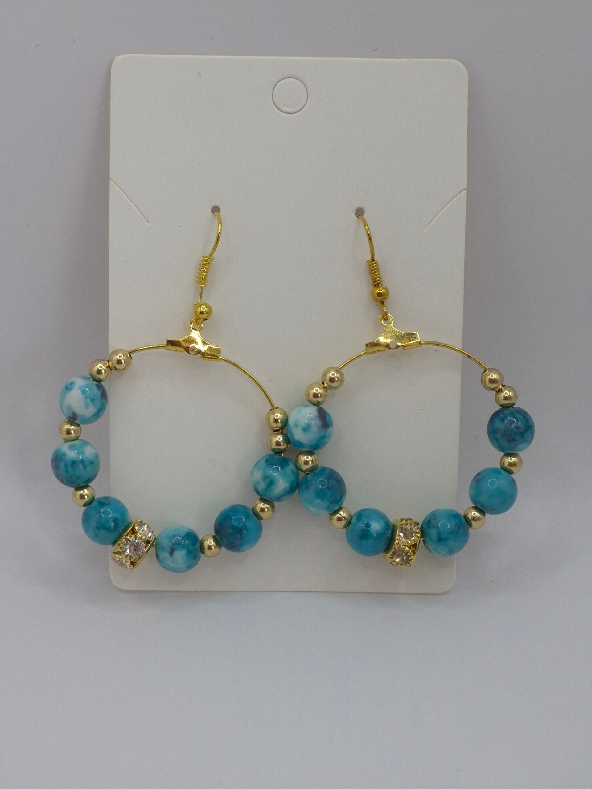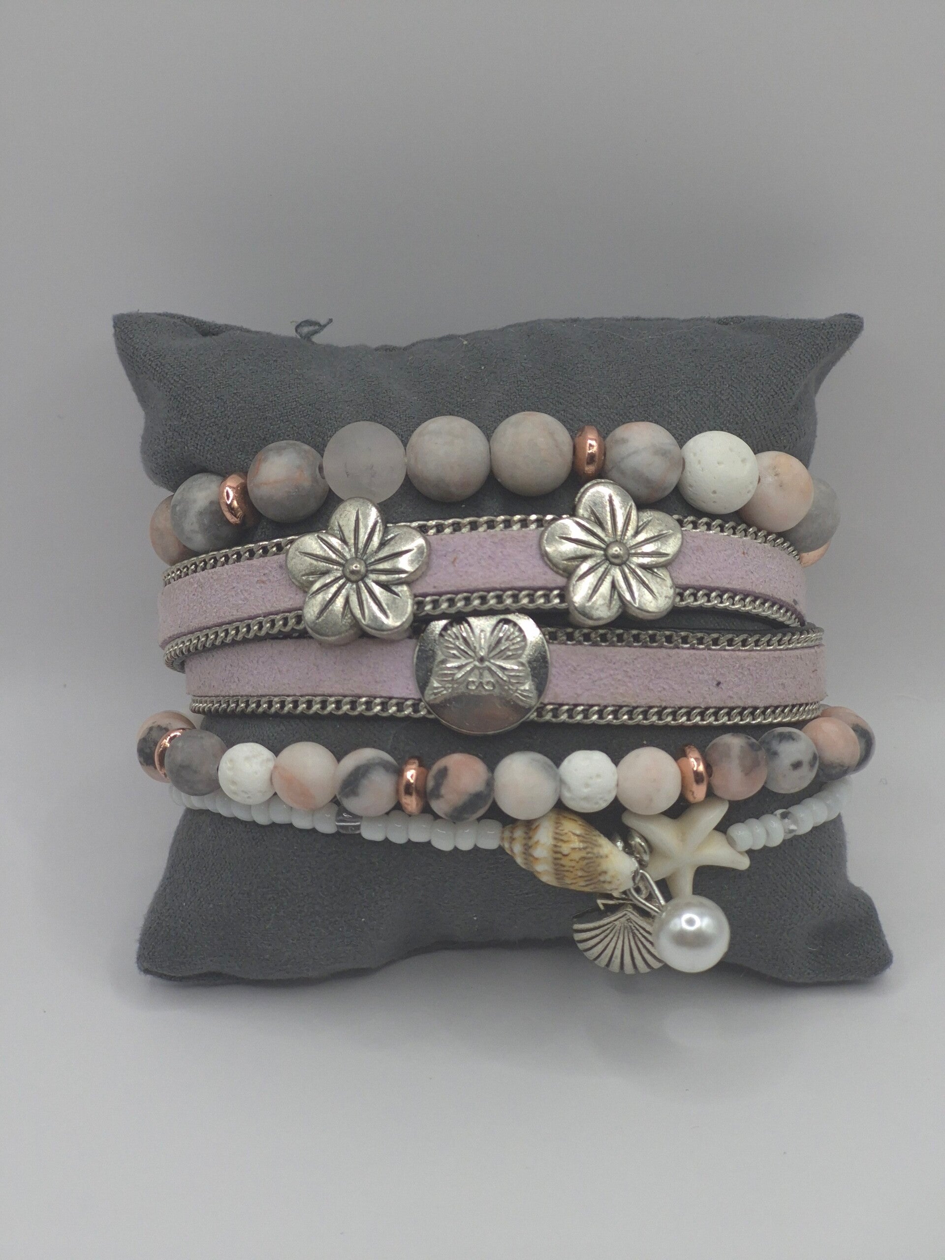 8 mm glaskraal parel turqoise/grijs op elastiek met hematiet tussenkraal