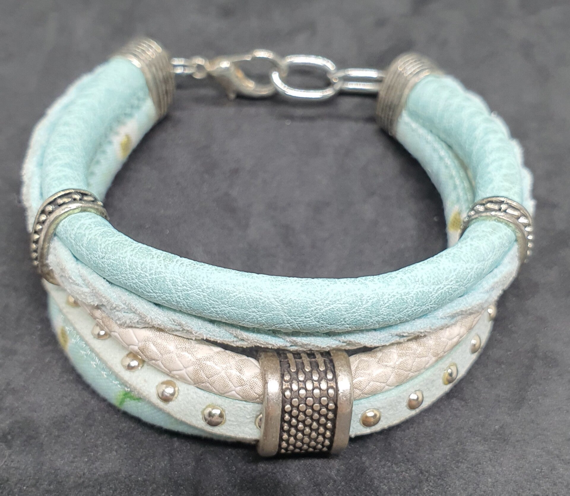 Mooie mint/gebroken wit kleurige immi armband met verlengstukje en slotje