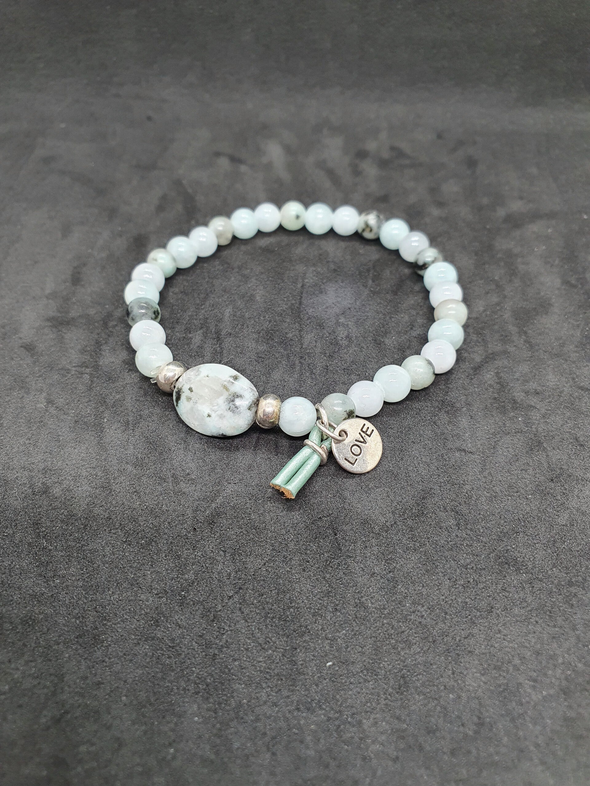 Natuursteen armband gemaakt met stevig elastiek en een extra natuursteen eraan.